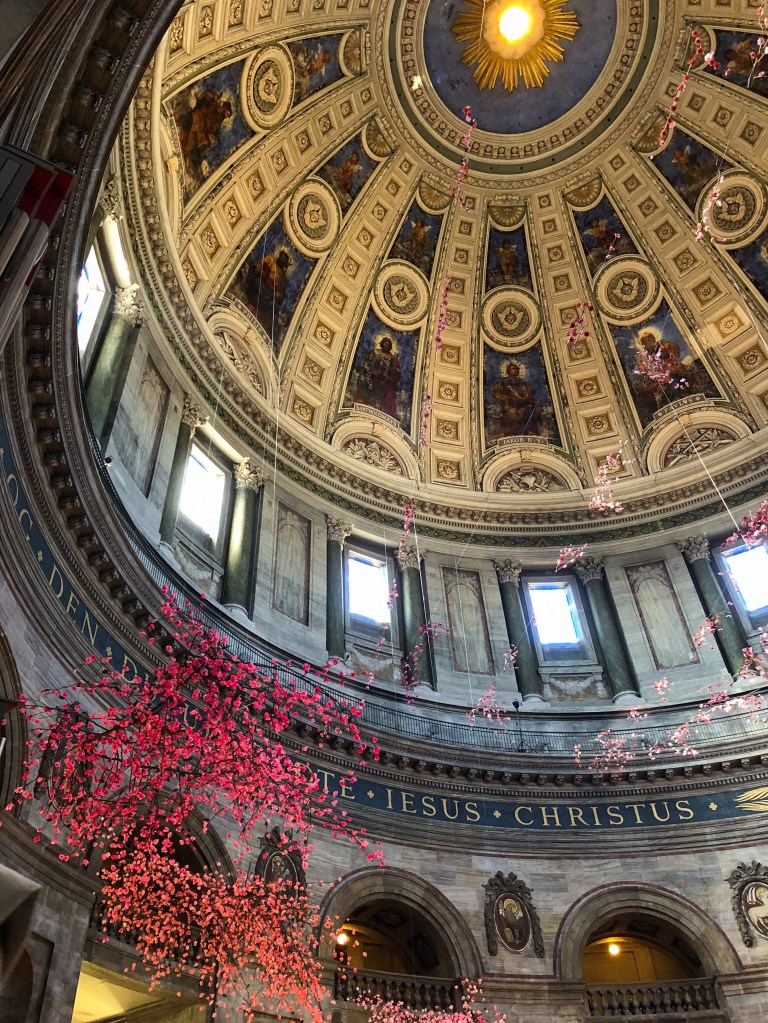 Vlakbij Amaliënborg ligt Fredrikskirke. De kerk is vrij toegankelijk. We lopen naar binnen en nemen plaats op een van de kerkbanken en genieten van de serene sfeer in de kerk. De koepel is prachtig versierd!