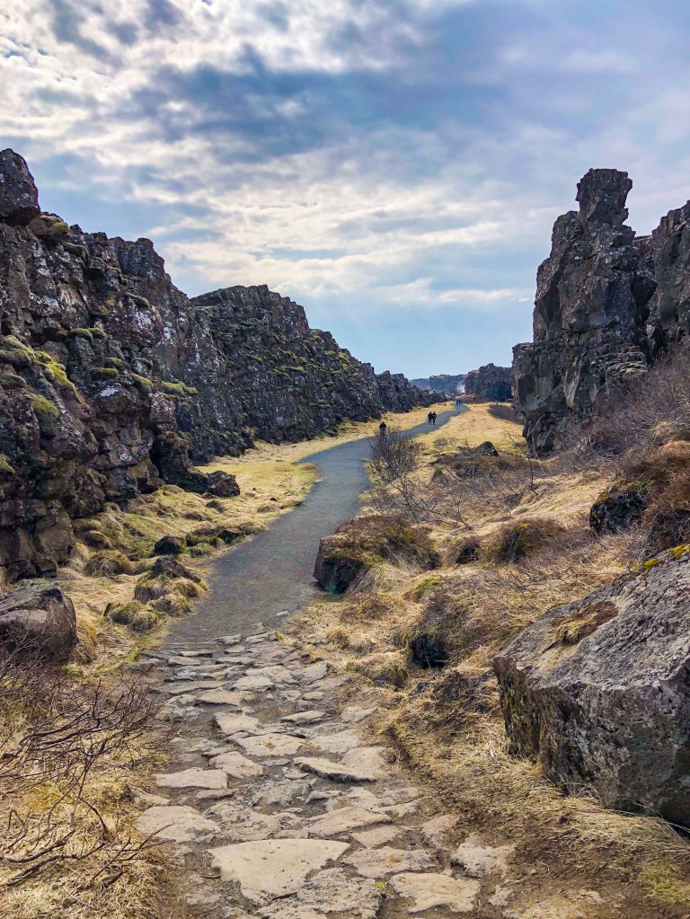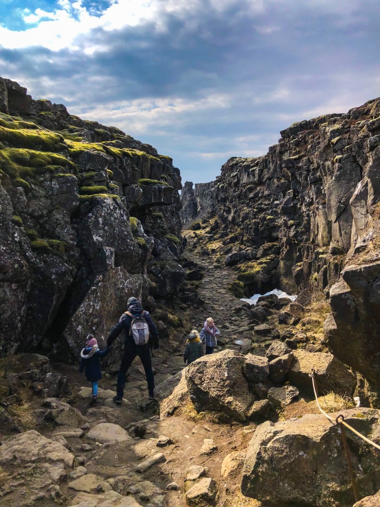 In dit Nationaal Park zie je letterlijk de geografische grens tussen het Euraziatische en Noord-Amerikaanse continent. De aardplaten van deze continenten, schuiven elk jaar zo’n 2,5 cm uit elkaar en dat uit zich op verschillende manieren zoals diepe kloven met koud en helder water, barsten, watervallen, verzakkingen en breukvlakken. Het is een prachtig park waar je heerlijk kunt wandelen. Wij maakten een korte wandeling richting de Öxarárfoss waterval.
