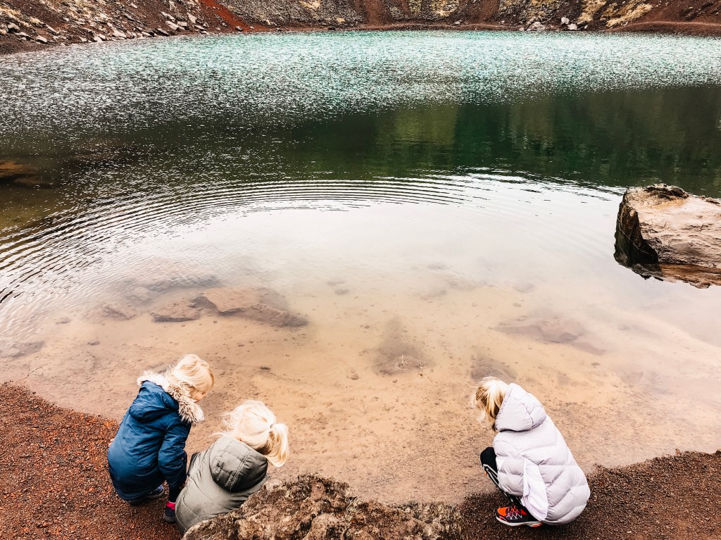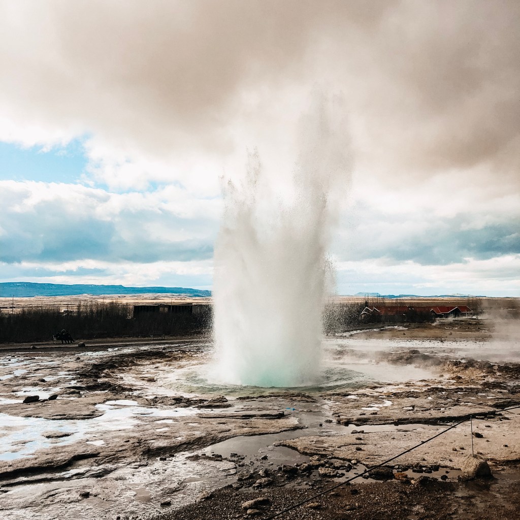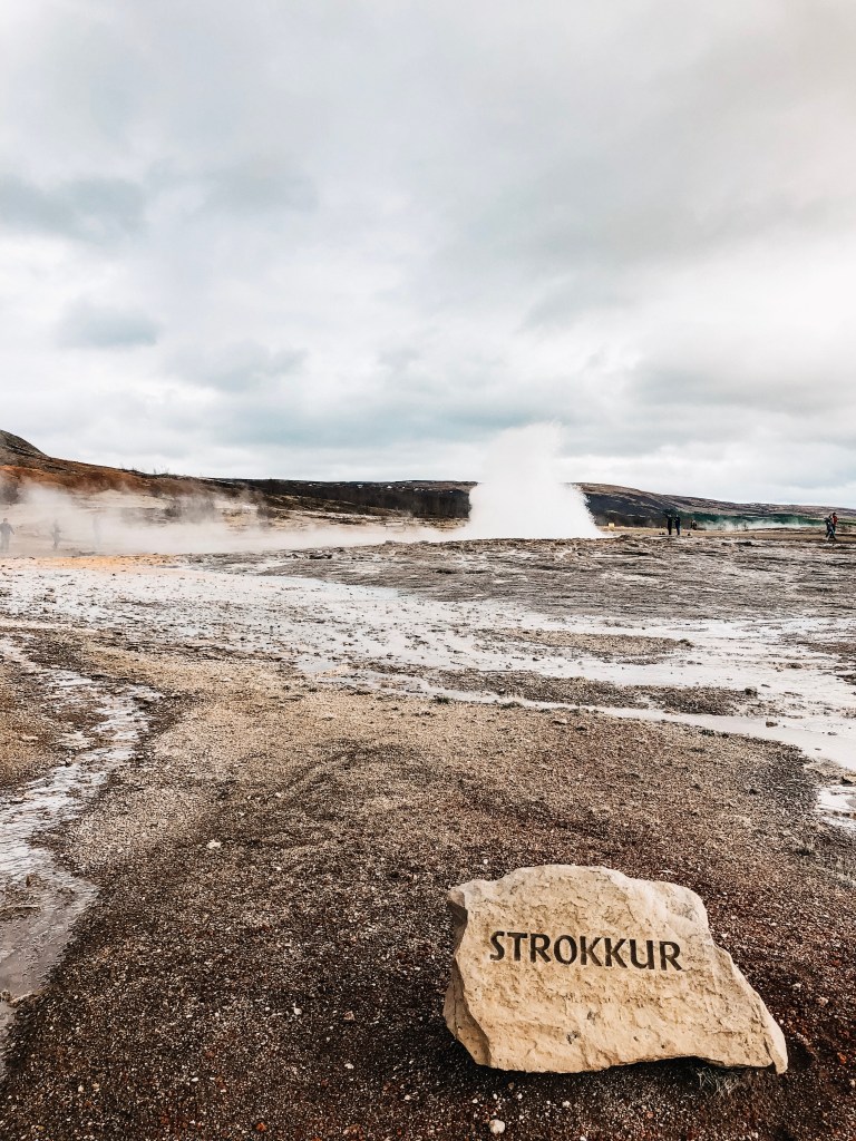Dit gebied is vernoemd naar de geiser Geysir die helaas niet meer actief is. De geiser Strokkur is dat gelukkig nog wel! Strokkur spuit ongeveer elke 10 minuten heet water tot wel 30 meter de lucht in. Super indrukwekkend én spannend… Want wanneer zou hij nou weer uitbarsten?! Onze meiden vonden het elke keer weer een beleving.