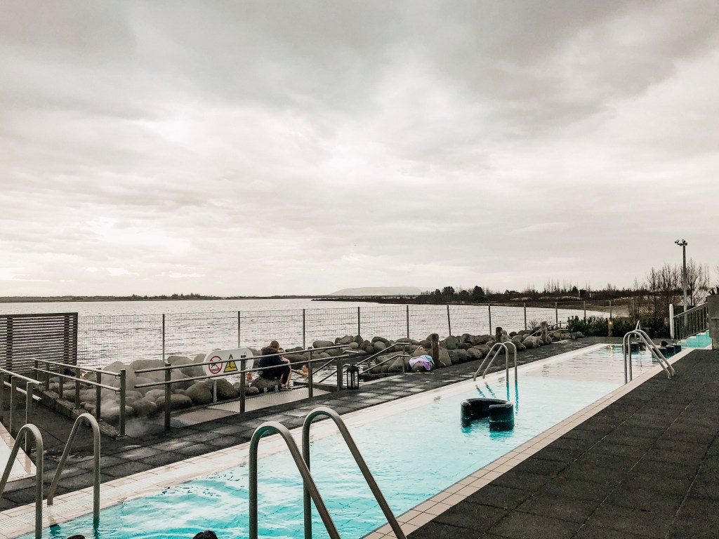 Tijdens ons bezoek aan de Golden Circle hebben wij ook 2 spa’s bezocht. Ons eerste zwem-uitje ging naar Laugarvatn Fontana Spa. Echt een aanrader als je met kinderen door IJsland reist. Je vindt er hottubs, sauna’s een stoombad en een warm waterbad met speelgoed voor de kleintjes. De spa heeft een open verbinding met het meer waar je na een saunabezoek kunt afkoelen. Joris was zo dapper om dat te doen… Brrr!! Ik heb met de meiden op een afstandje staan kijken… Na afloop hebben wij in het bijbehorende restaurant gesmuld van het voor IJslandse begrippen betaalbare buffet. (0-6 jr gratis, 7-12 jr €14,- , 13+ €28,-)