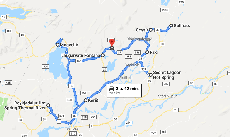 Van hieruit gaan we de Golden Circle ontdekken. De route bestaat officieel uit 3 stops: Geysir, de indrukwekkende Gullfoss waterval en Nationaal Park Thingvellir. Naast deze officiële stops, laat ik je nog wat ander plekken zien die zeker een bezoek waard zijn.