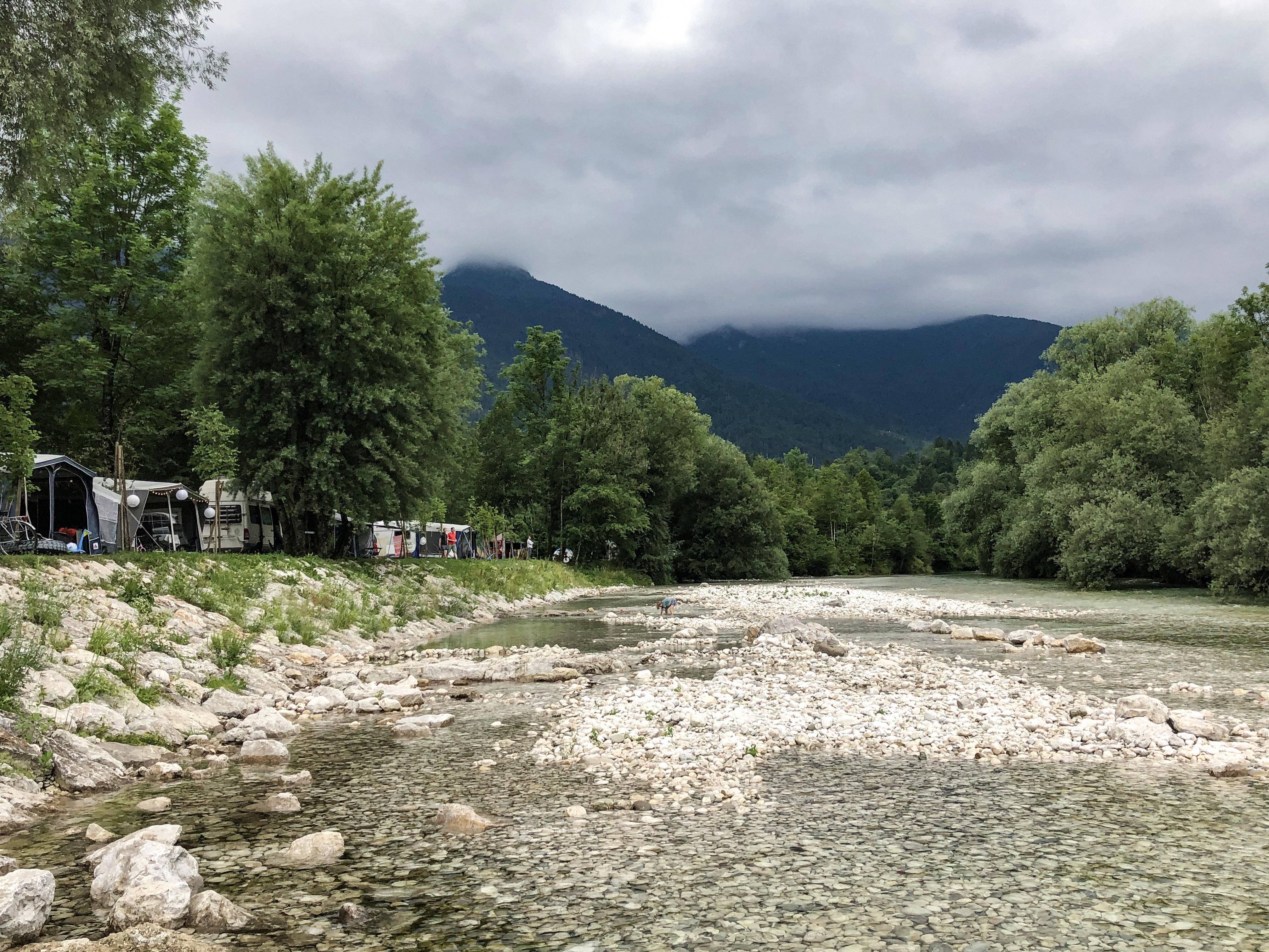 Wij hebben in Slovenië rondgereisd met onze caravan en verbleven op verschillende campings. Onze uitvalsbasis hebben we zorgvuldig gekozen. Rondom het meer van Bled kan het tijdens de zomermaanden ontzettend druk worden. Daarnaast hadden wij ook een aantal dingen rondom het meer van Bohinj op ons lijstje staan, wat zo’n 25 km verderop ligt. Verblijven in een rustige omgeving heeft altijd onze voorkeur daarom hebben wij gekozen voor een uitvalsbasis richting het meer van Bohinj, in Bohinsjka Bistrica. Met de auto ben je binnen 15 minuten in Bled en dat was voor ons prima. Wij verbleven 6 nachten op Camp Danica; een camping aan de Sava rivier. Ik kan je deze camping van harte aanbevelen. Wij stonden op een van de mooiste plekjes direct áán de rivier. Als we ’s ochtends de caravandeur openden, was de heldere rivier het eerste uitzicht. De meisjes hebben echt uren gespeeld langs de waterkant. Visjes vangen, dammen bouwen en lekker poedelen in het water. Op de warmere dagen gingen ze keer op keer met een bodyboard stroomafwaarts door de rivier. Gegarandeerd plezier! ’s Avonds genoten Joris en ik tijdens een wijntje van het fijne uitzicht en het geluid van het stromende water… heerlijk rustgevend! Als je zeker wil zijn van een plekje daar, is het handig om in elk geval tijdens het hoogseizoen te reserveren.