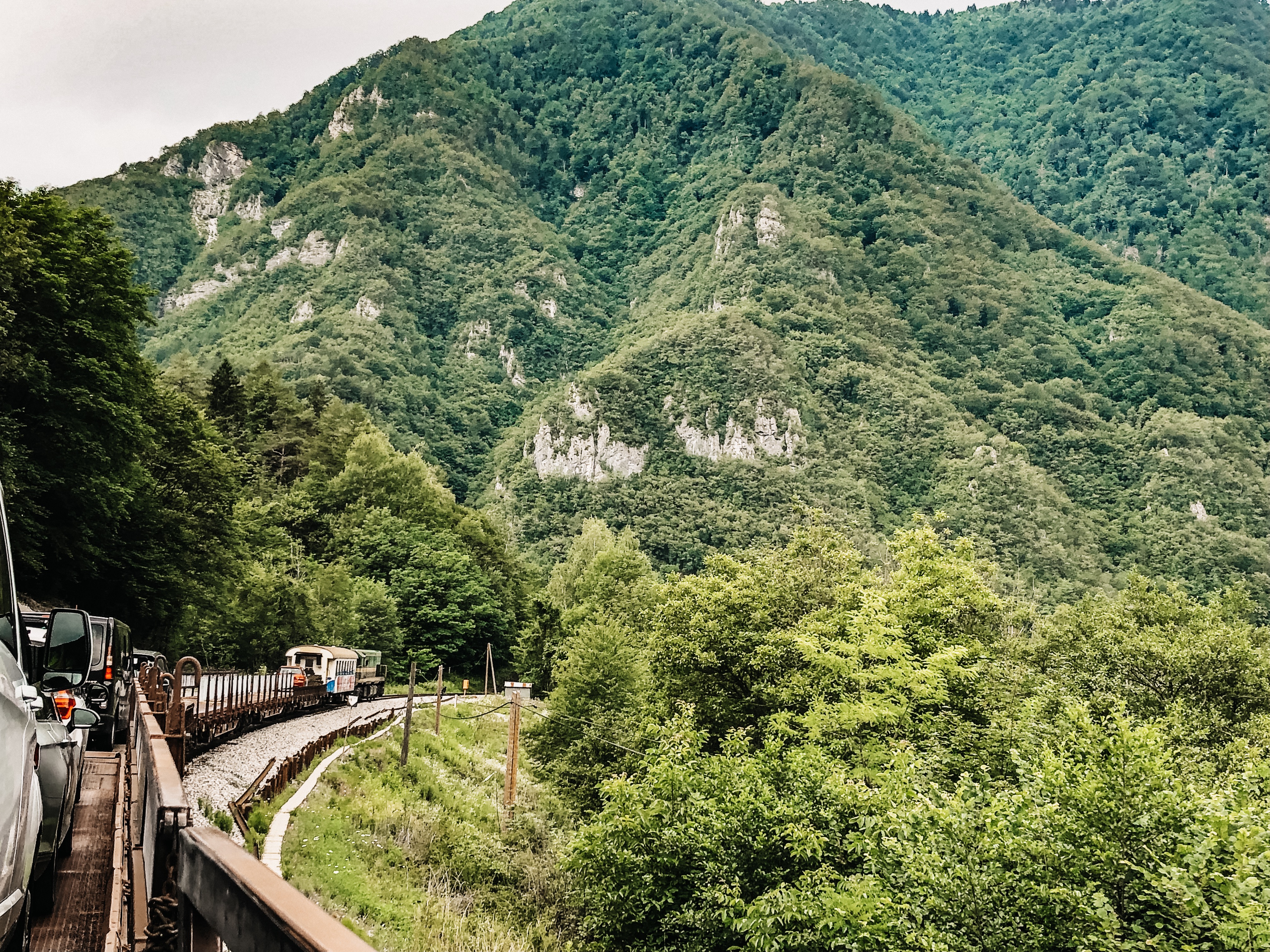 Als je van het oostelijk deel van de Julische Alpen (Regio Bohinj) naar het westelijk deel (de Soča vallei) wil reizen, is het een slimme en leuke keus om met de autotrein te gaan. Als je met caravan reist, scheelt het namelijk ontzettend veel tijd omdat je anders om de bergen heen moet rijden. De bergpas wil je echt niet rijden met je caravan. Nu neem je de trein en rijdt je dwars dóór de bergen wat ook nog eens een fantastische ervaring is. Ook zonder caravan is dit een aanrader maar wij zijn dus met auto én caravan op de trein gegaan in Bohinjska Bistrica en zijn door de bergen naar Most na Soci gereisd. Onderweg rijd je door lange tunnels maar kun je ook stukken genieten van het mooie uitzicht. Tijdens de rit reis je door het nog authentieke Slovenië. Wij zagen kleine dorpjes met oude huizen, mensen aan het werk in hun moestuintjes (het lijkt wel of iedereen in Slovenië een moestuintje heeft), wapperende was aan de lijn, kleine stationnetjes en schitterende uitzichten.
