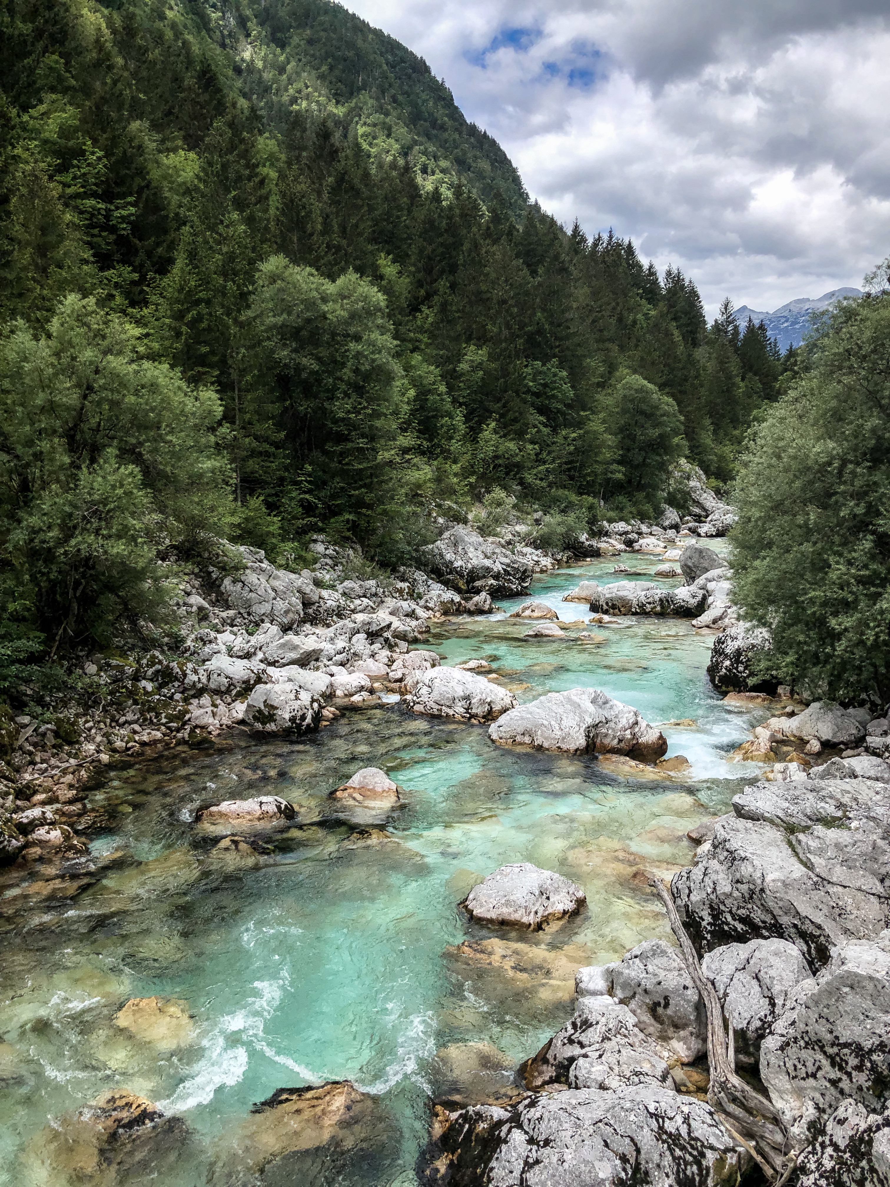 In de Julische Alpen stroomt een prachtige rivier: de Soča rivier. De rivier met zijn typerende knalblauwe kleur stroomt door een gedeelte van Triglav National Park en mondt uit in de Golf van Triëst. Dorpjes Bovec, Kobarid en Tolmin liggen allemaal in de Soča vallei en zijn een walhalla voor outdoor liefhebbers. Er zijn talloze watersport mogelijkheden zoals raften, kajakken, tuben en canyoning maar ook wandelaars en mountainbikers komen aan hun trekken. Een aanrader is de Soča Trail: een 25 km lange wandeltocht langs de oevers van de Soča rivier. Onderweg loop je over hangbruggen en geniet je van de mooiste uitzichten. Een andere must-do is de Tolmin Kloof. De wandeling door deze kloof voelde voor mij op sommige momenten als een uitstap naar een regenwoud: net zo groen, tropisch en mooi! Maar er is meer: ga een kijkje nemen bij de Kozjak waterval en loop over de oude Napoleonbrug bij Kobarid en vertrek zeker niet voor je een duik hebt genomen op een van de meest idyllische zwemplekjes ooit.