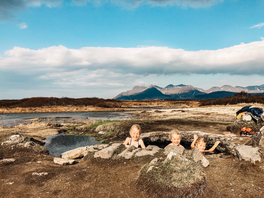 Tijdens onze research vooraf, lezen we ergens op internet dat er op onze route richting de Golden Circle een natuurlijke hotspring ligt. Deze tip zijn we bijna nergens tegen gekomen dus we vroegen ons af of het wel de moeite waard is maar het ligt langs de route dus we willen het toch wel even met eigen ogen gaan bekijken. Gewapend met een tas met zwemkleding en handdoeken lopen we vanaf de ‘parkeerplaats’ (niet meer dan een stuk grind in the middle of nowhere) richting de hotspring. We zijn helemaal alleen en vragen ons af of we wel goed zitten. Bijna waren we weer omgedraaid… Maar gelukkig zien we in de verte rookpluimen opstijgen. Dan moeten we haast wel goedzitten dus we lopen nog een stukje door. Eenmaal bij de hotspring zien we dat hij echt heel klein is. Onze meiden passen er met zijn drietjes nèt in! We trekken de dames snel hun badkleding aan met de ijzige wind die er waait en plonsen dan in het heerlijk warme water. Echt… wat een geweldige ervaring! In verste verte zie je alleen maar uitgestrekte natuur en bergen en er is verder niemand! Ik vraag mezelf op dat moment af waarom deze plek nog niet overlopen is door toeristen… We genieten van het mooie uitzicht, het heerlijke warme water (van zo’n 40 graden!) en het plezier wat de meiden hebben. Een van de hoogtepunten van de reis! Voor wat korte video’s van deze plek, neem dan even een kijkje op mijn Instagram pagina bij het hoogtepunt ‘IJsland 1’ (de hotspring zie je halverwege de story dus je moet even doorklikken).
