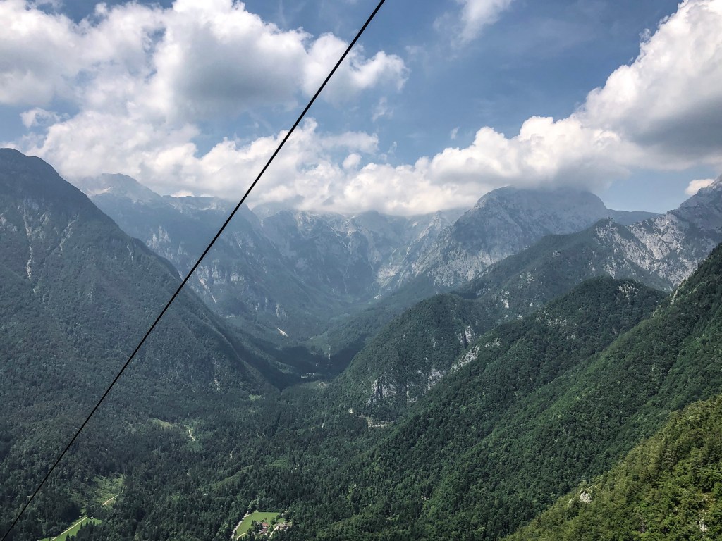 Vanuit de camping waar wij verblijven, Camp Menina, is het 50 minuten rijden naar de parkeerplaats van de kabelbaan (adres: Kamniška Bistrica 2, Stahovica). Vanuit Ljubljana is dit ook goed te bereiken en rijd je in ongeveer 45 minuutjes naar dit startpunt. Je kunt op meerdere manieren naar Velika Planina. Vanuit de plaatsen Stahovica, Kamniška Bistrica of Krivčevo kun je omhoog wandelen. Veruit het handigste is om te starten in Kamniška Bistrica. Daar bevindt zich het station van de kabelbaan waar ook voldoende parkeergelegenheid is. Vanuit het dal lopen er meerdere routes omhoog (geschatte minimale wandeltijd is 3uur). Wij vinden dit met de kinderen en bagage geen goed idee dus nemen de kabelbaan omhoog. Het eerste stuk zitten we in een dichte cabine, daarna gaan we verder met een stoeltjeslift naar het herdersdorp. De stoeltjeslift heeft 2 stops; de eerste halte is bij restaurant Zeleni Rob, de tweede halte is de top en dus het eindpunt. Om bij ons huisje in het toeristendorp te komen, moeten we uitstappen bij de eerste halte. Na 5 à 10 minuten wandelen komen we bij de huisjes aan waar het genieten meteen kan beginnen. De hottub is al opgewarmd dus bikini’s aan en plonsen maar!