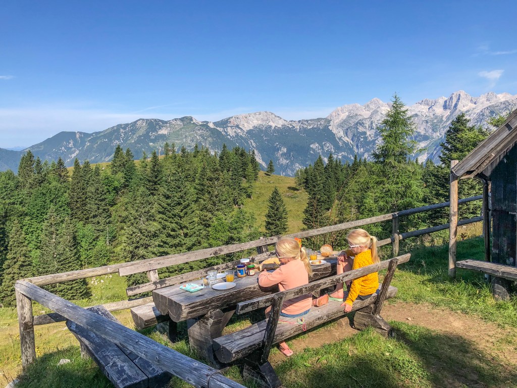 Velika Planina is prima als daguitstap te bezoeken. De lift naar boven draait al vanaf 8.30u in de ochtend. Vervolgens heb je een hele dag de tijd boven op het plateau om het mooie herdersdorp en zijn omgeving te verkennen. Aan het einde van de middag ga je net voordat de lift 18.00 u weer sluit, terug naar beneden. Maar de karakteristieke houten huisjes van Velika Planina zijn niet alleen voor herders. In de jaren ‘60 is er een toeristendorpje gebouwd met huisjes die er hetzelfde uitzien als die mooie houten herdershuisjes. Wil je echt de unieke en magische ervaring van Velika Planina beleven, boek dan een of twee overnachtingen in zo’n huisje. De zon onder zien gaan vanuit de hottub voor de deur van je hutje, een wandeling maken in het gouden avondlicht als alle andere toeristen al met de lift terug naar beneden zijn of ontbijten met uitzicht op de bergtoppen… Een verblijf op een plateau voegt echt wat toe aan de beleving van dit mooie stukje Slovenië.