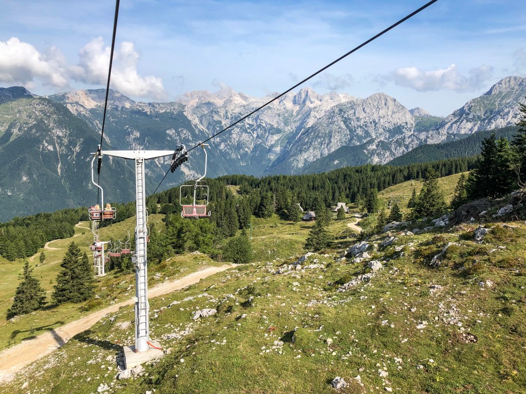 - Op het plateau is een restaurant te vinden waar je kunt eten. Zeleni Rob is een gezellig berghut restaurant en ligt naast de 1estop van de stoeltjeslift. Vanuit het restaurant heb je een prachtig uitzicht op de vallei en de Kamnik-Savinja Alpen. Op de menukaart staan heerlijke lokale gerechten voor een prima prijs. Aanraders zijn de dumplings met ricotta en ‘Jota’ een soort soep met bonen, zuurkool, aardappelen en spek. Mijn persoonlijke favoriet is Ricet, een stoofpotje met een lokaal worstje en rijst .